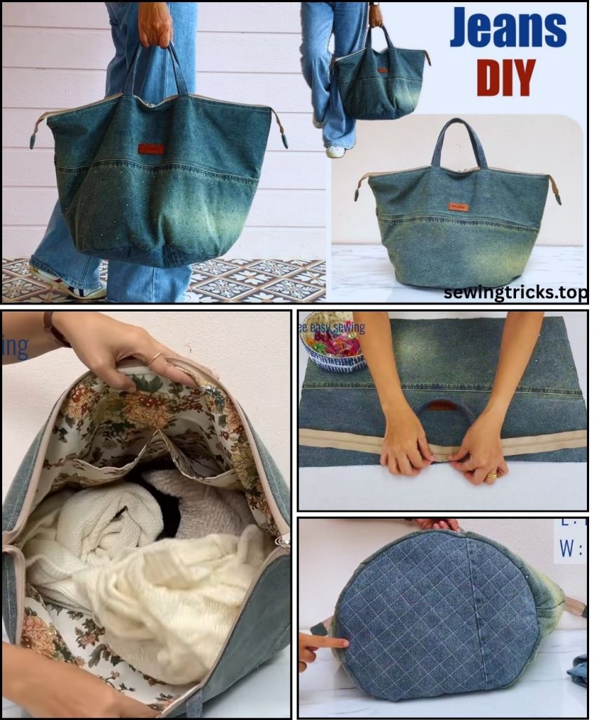 You’ve successfully transformed a pair of old jeans into a stunning, custom-made zipper tote bag. You’ve tackled curves, zippers, and heavy fabric to create a durable and eco-friendly accessory that you can be proud of. Now, go fill it up and show it off!