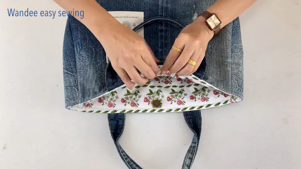 - Final Assembly: Place the outer denim bag (with straps attached) inside the lining bag. The right sides of both bags should now be facing each other.